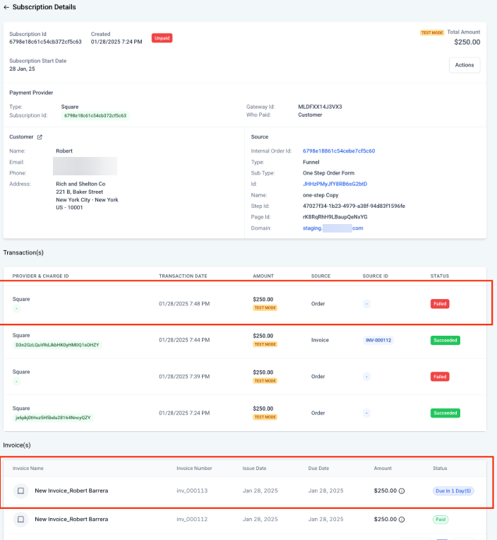 Section titled “Step 3: Monitor Payment Status”- Once the payment is received via the invoice, the subscription automatically reactivates, as long as there are no other unpaid invoices tied to it.