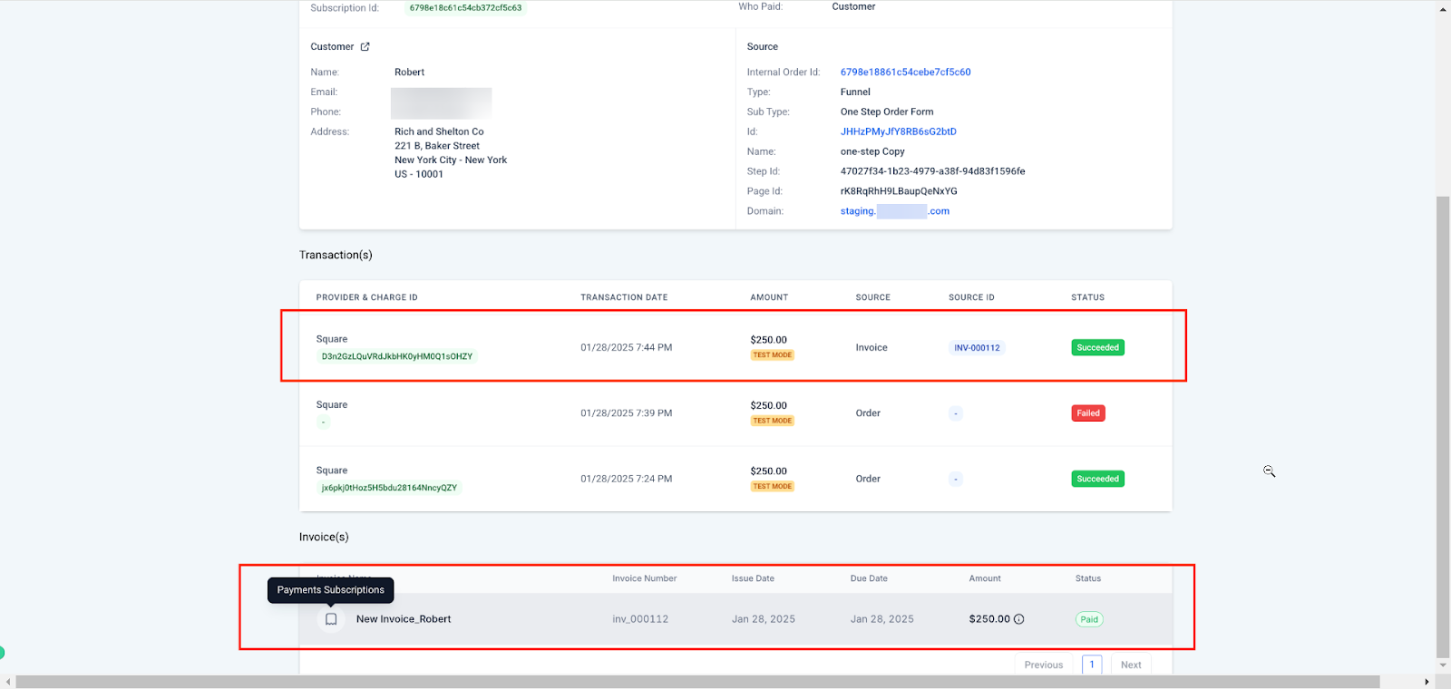 3. Open Subscription Details and click on the Invoices tab to view the automatically generated invoice.
