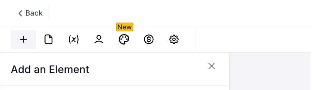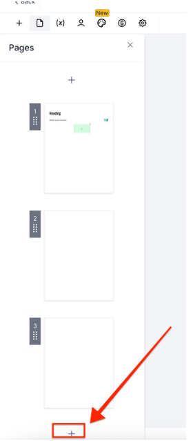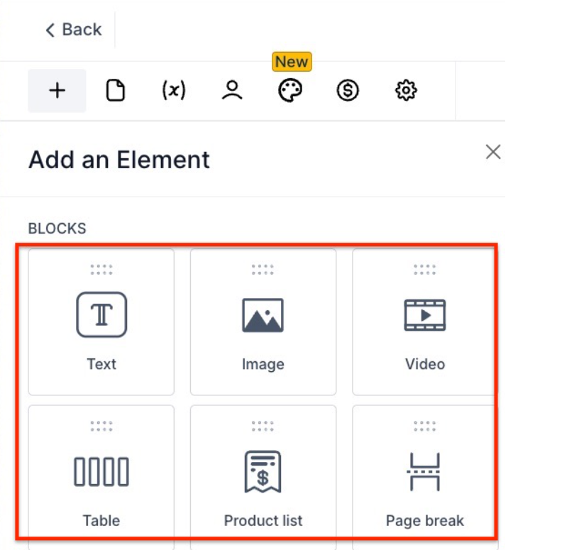 - To add the elements, click on the “+” at the top left corner of your document builder.