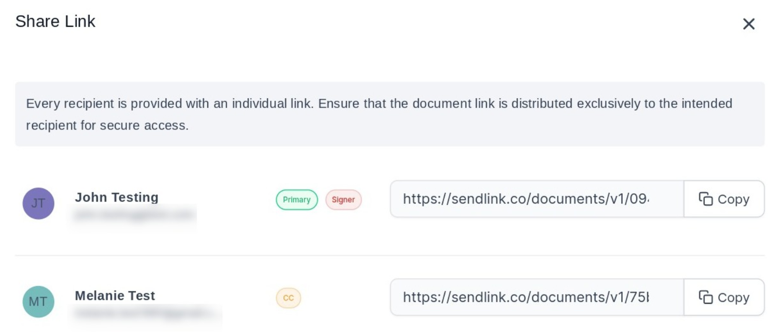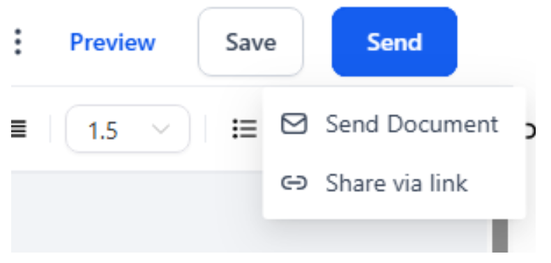 - Share via Link: Click here to get the link to share it with the recipient in the document (only available on the status Waiting for Others)
