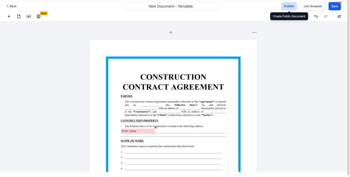 Step 2: Editing your Document/Contract