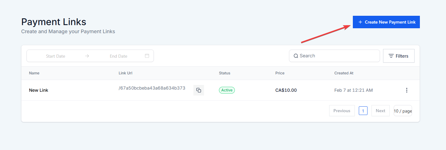 Click on the Payment Links feature to begin creating a new payment link for your products or services.