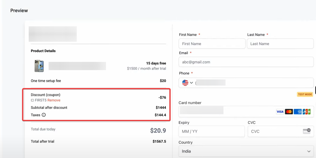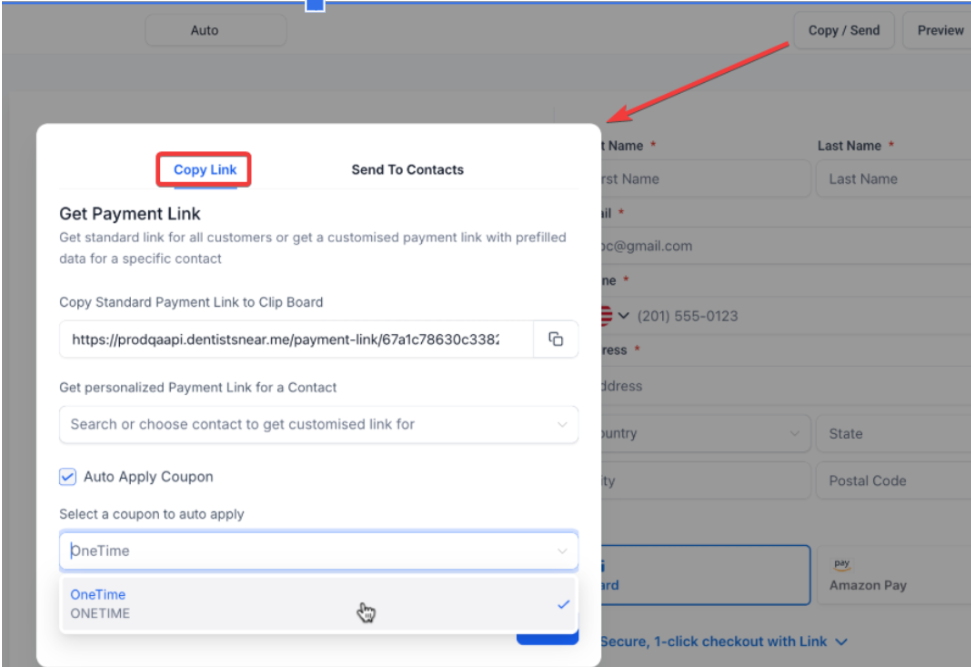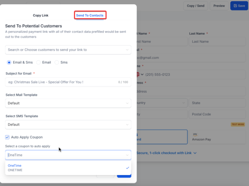 Note: You may also auto-apply coupon codes when sending payment links. On opening the link, the codes will be applied automatically.