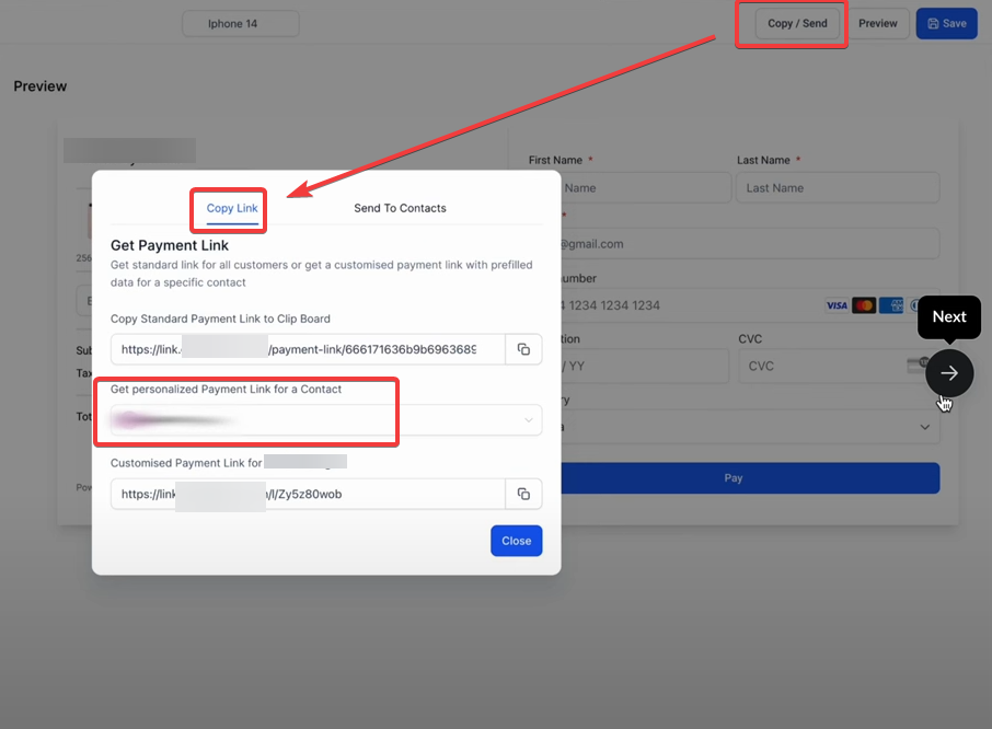 8. Save and Share the Payment Link: