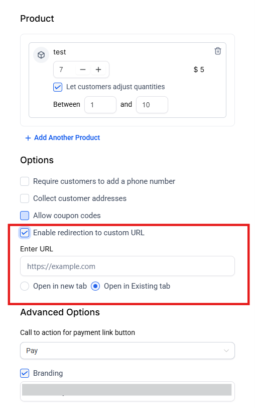 - Custom URL Redirection for Payment Links: Redirect customers to a custom URL after completing a payment via payment links.