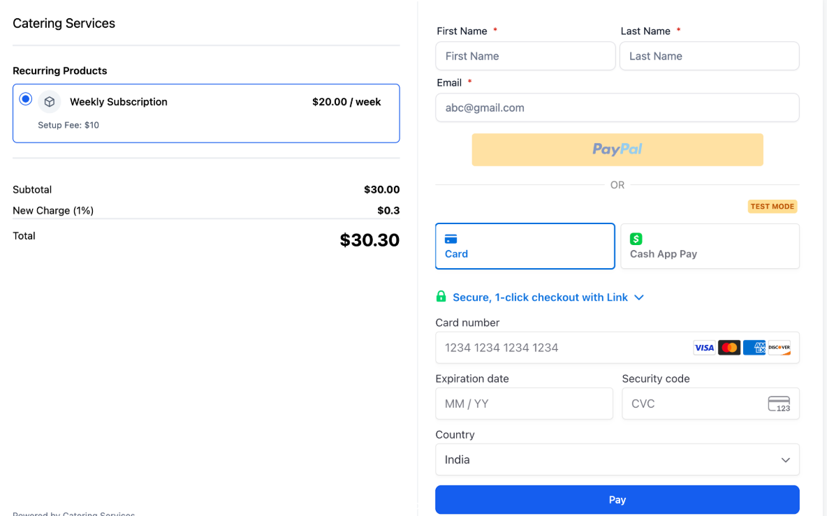 - Transparent Display: Fees are shown as a separate line item during checkout and included in the total amount, ensuring clarity for customers.