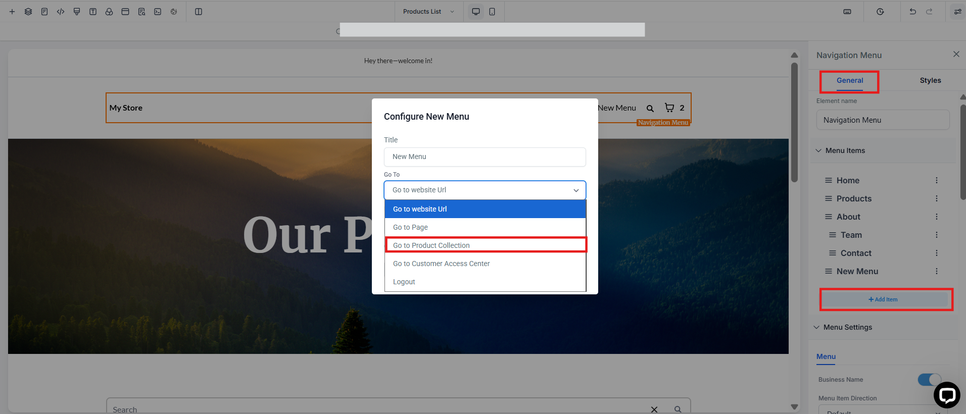 Section titled “4. Display Collections on Your Website:”- Go to your website’s navigation settings.