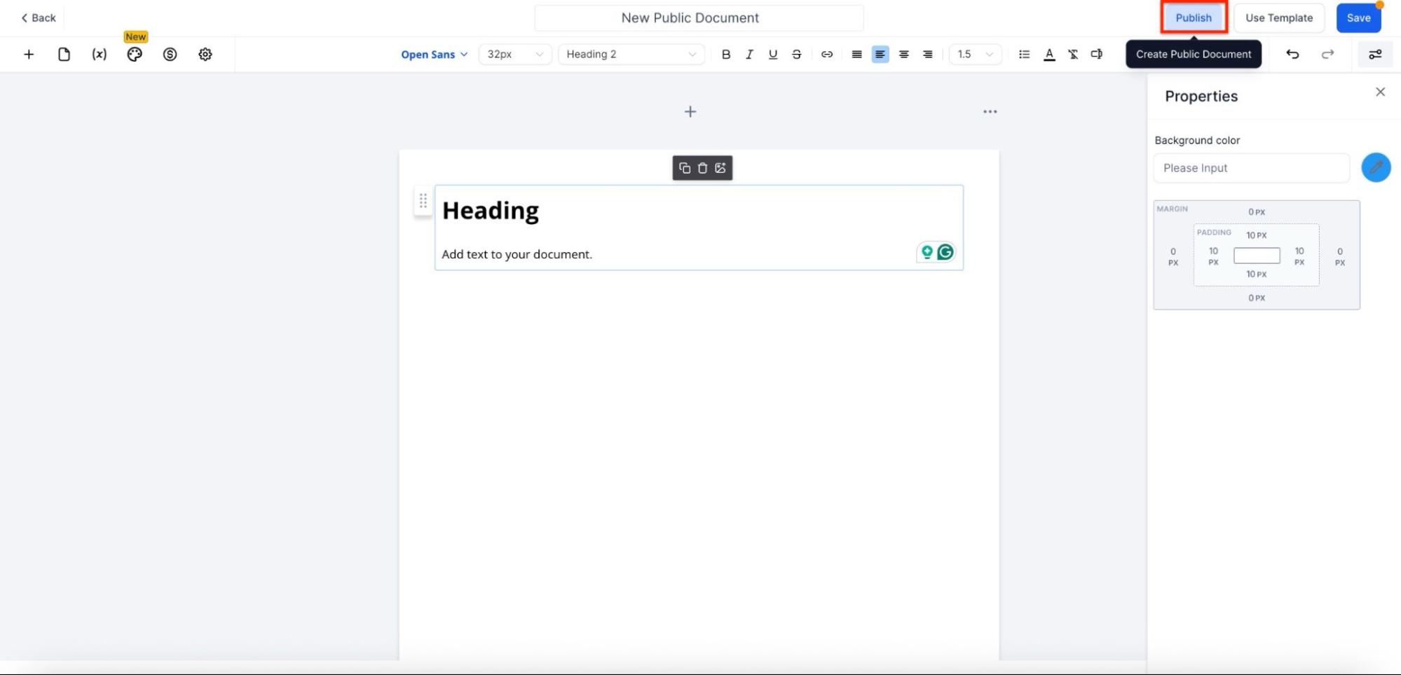 - Click “New Template” choose “New” and then “Create Public Document” to begin.