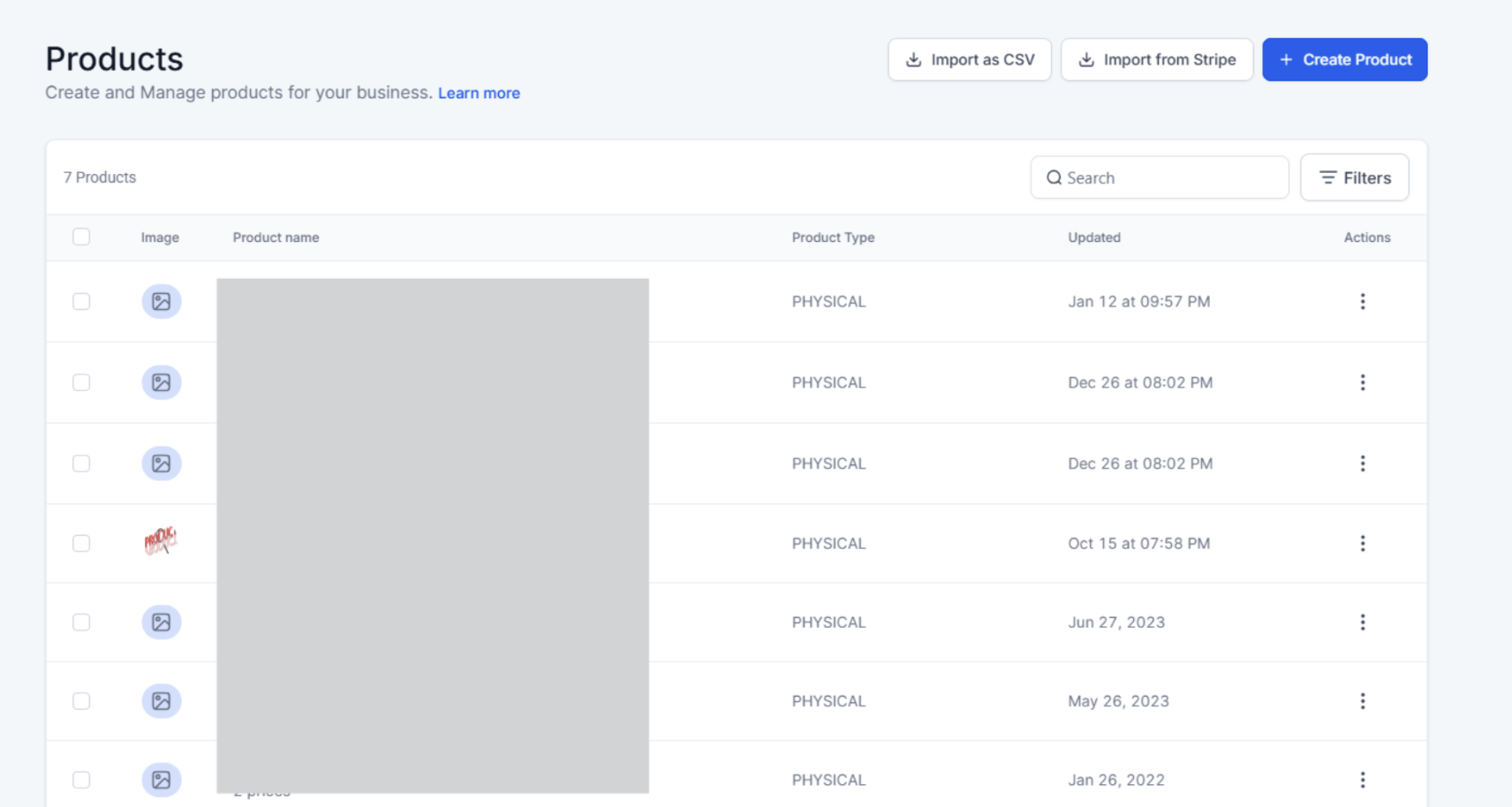 - You may also choose to duplicate an existing product. You’ll be redirected to the new product’s edit screen, where you can make any desired changes.