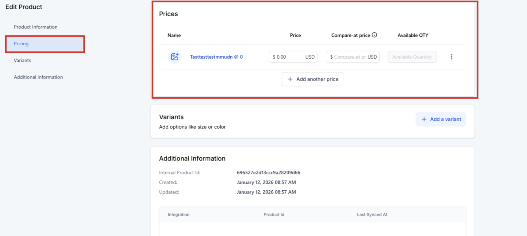 - Click to edit an existing product or add a new one.