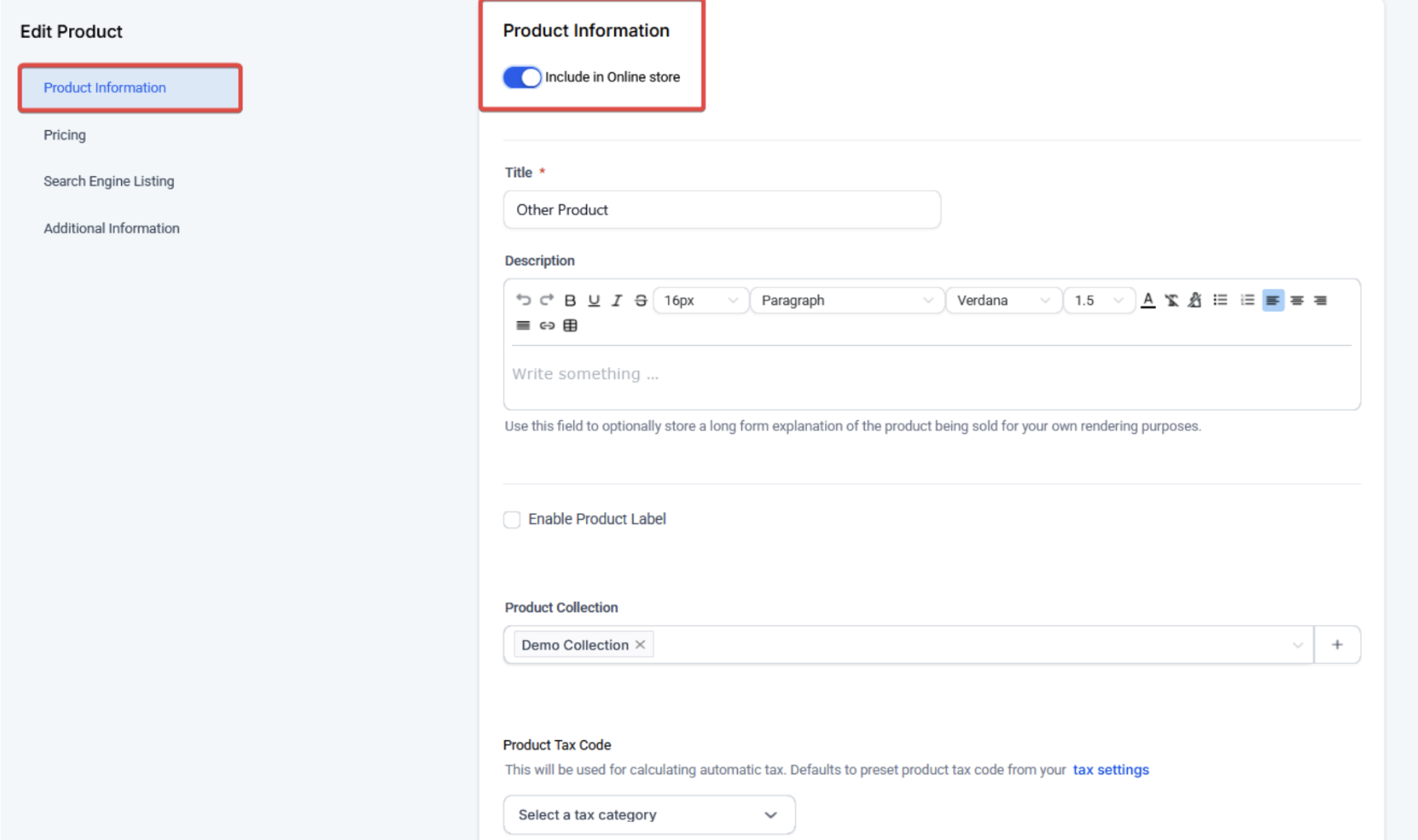 - Ensure you enable the “Include in online store” toggle.