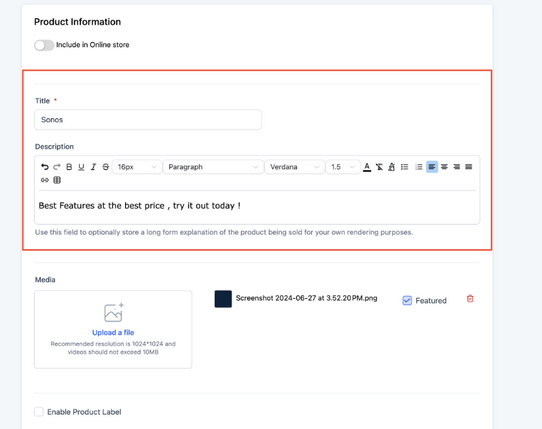 To use, toggle on the Import Description feature on in > invoice settings > product settings > import product description.