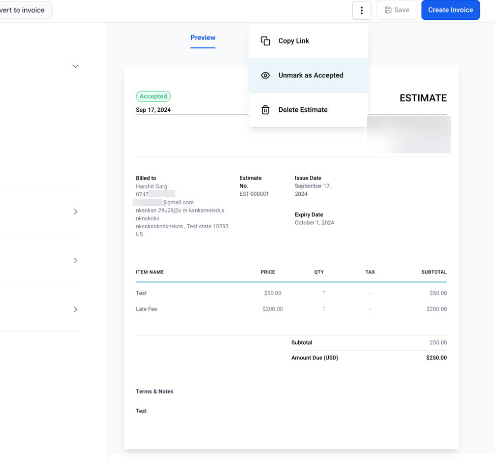 - This will create an invoice based on the accepted estimate, which can then be sent to the client for payment.