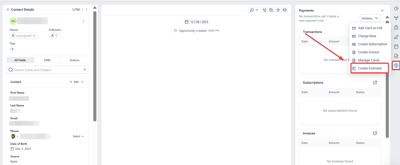 Please note: You can Send estimates directly from the contact page with auto-filled details and track them in the Estimates Dashboard for seamless management**.**
