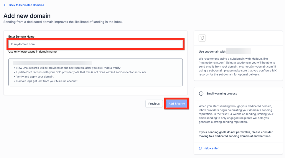 3- Click Add Domain and enter a subdomain (e.g., ).