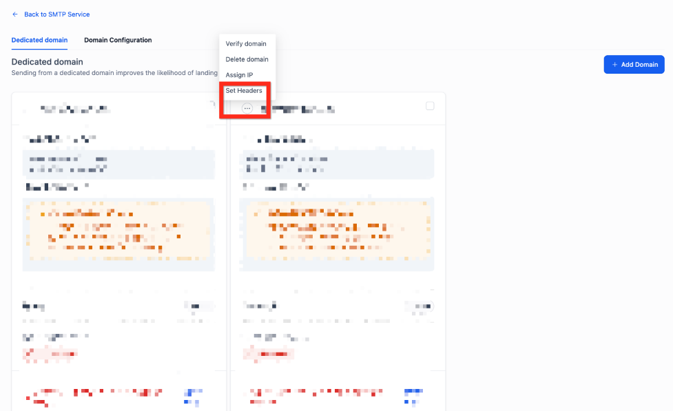 7- Once verified, click the 3-dot action menu and select Set Headers to define your “From Name” and “From Email.”