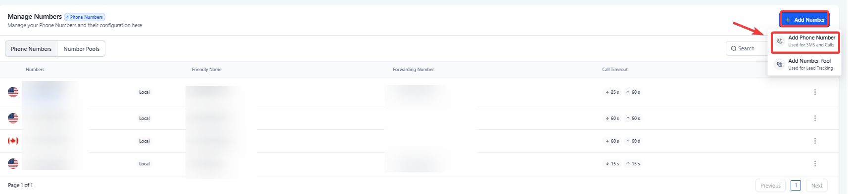 2- Click Add Number > Add Phone Number.