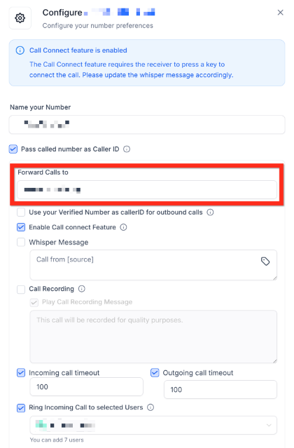 Section titled “3- Configuring Call Forwarding”Ensure you remain reachable even when away from your dashboard: