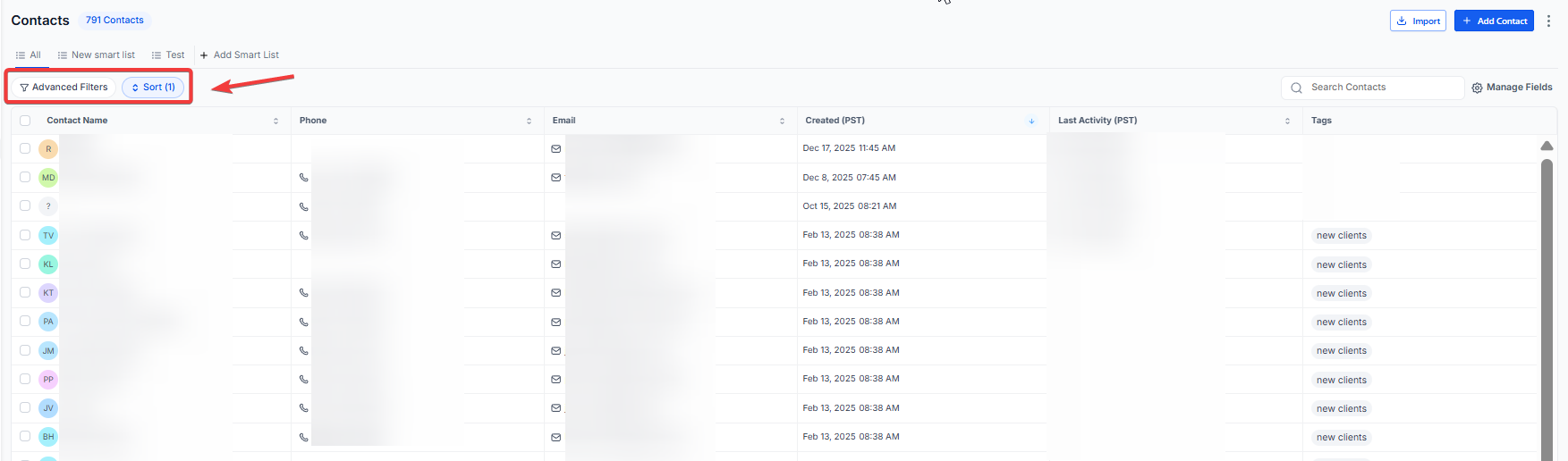 Answer: After applying your desired criteria in the Advanced Filters section, you can save the resulting list as a “Smart List.” This allows you to quickly access that specific segment of contacts for future communications without manually filtering them again.