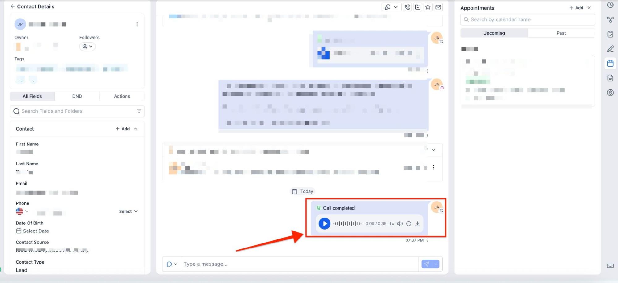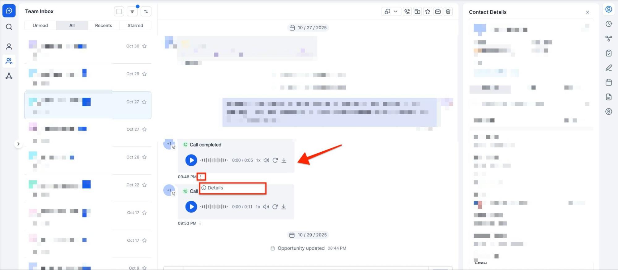 - Conversations Tab: View all contact conversations, including call recordings, under this tab.
