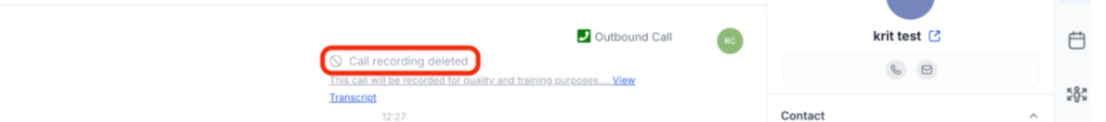 Answer: Yes. If a contact record is deleted, all associated conversation history, including call recordings, is removed from the system. If you need to keep the recordings but remove the contact, we recommend downloading the recordings locally before deleting the record.