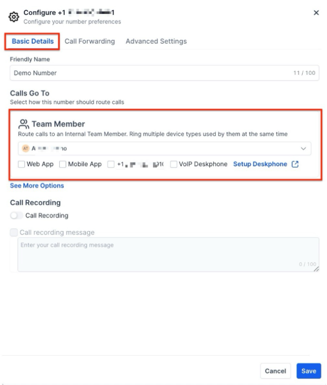 - Select Users: Choose up to seven users who will be notified of incoming calls. This ensures that calls are answered promptly by the first available team member.