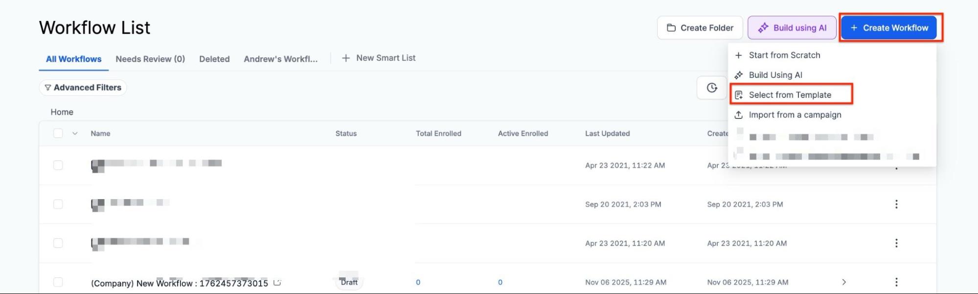 Section titled “Step 1: Go to Automation on the left, then Workflows at the top”