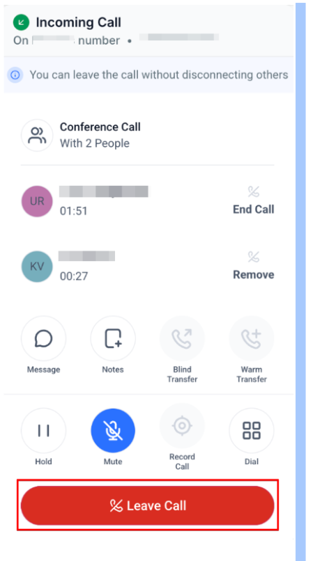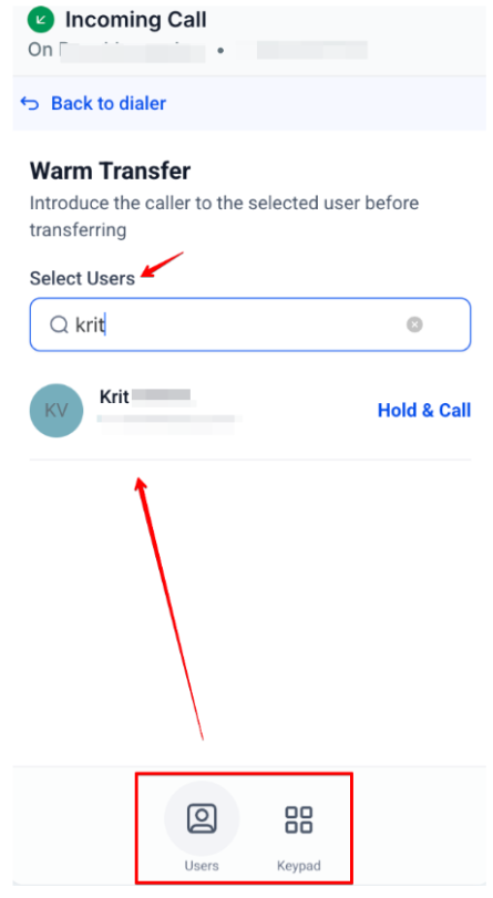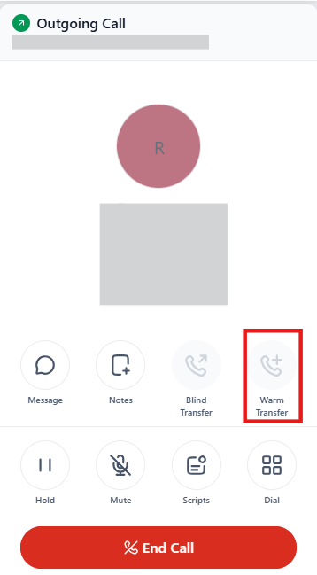Section titled “Warm Transfer”- Allows you to speak to the recipient before transferring the call.