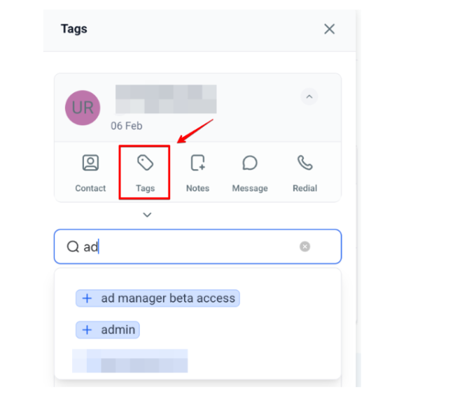 Section titled “Tag Contacts After Calls”- Apply tags to contacts after calls from the Recents screen.