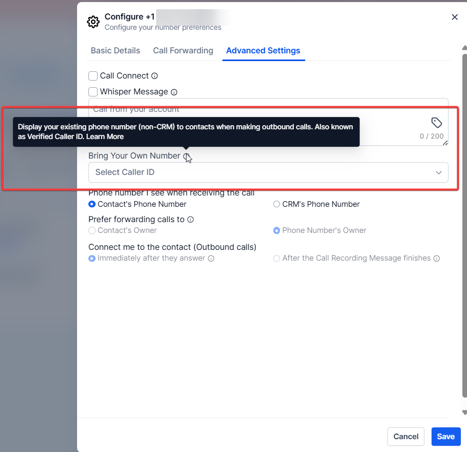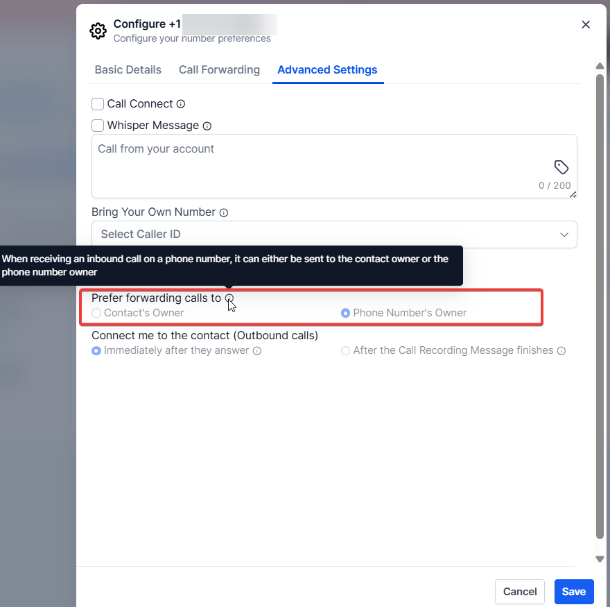Section titled “Advanced Settings”Enable Call Connect