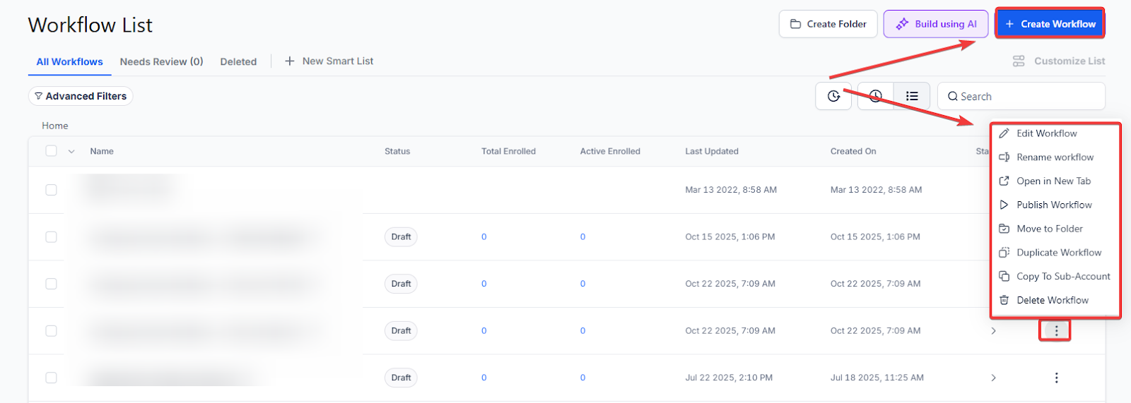 - Navigate to your workflow automation area.