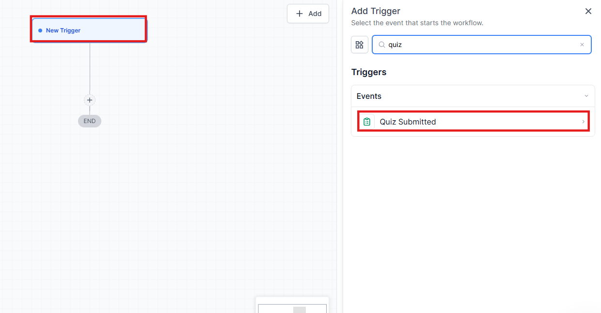 - Select Quiz Submitted from the available trigger options.