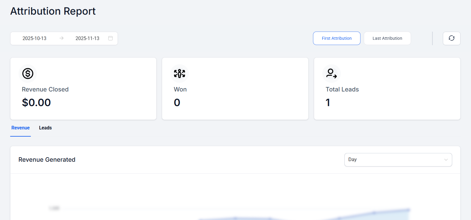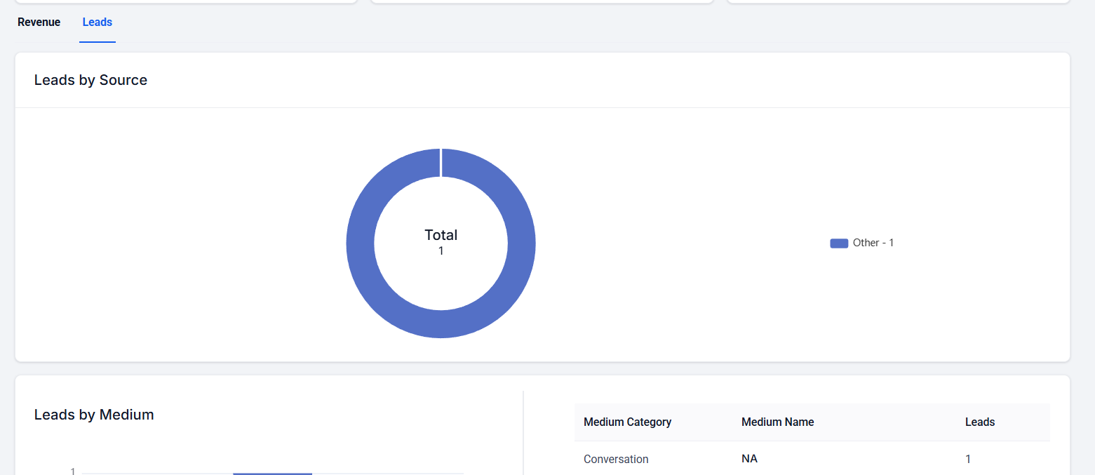 Section titled “Understanding The Attribution Report”The Attribution Report feature empowers business owners to gain deeper insights into the lead sources and understand their marketing efforts. With this report, you can track where your leads are coming from, whether it’s through the UI (Manually made), third-party sources (like Zapier or other inbounds), or other avenues.