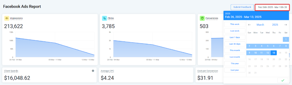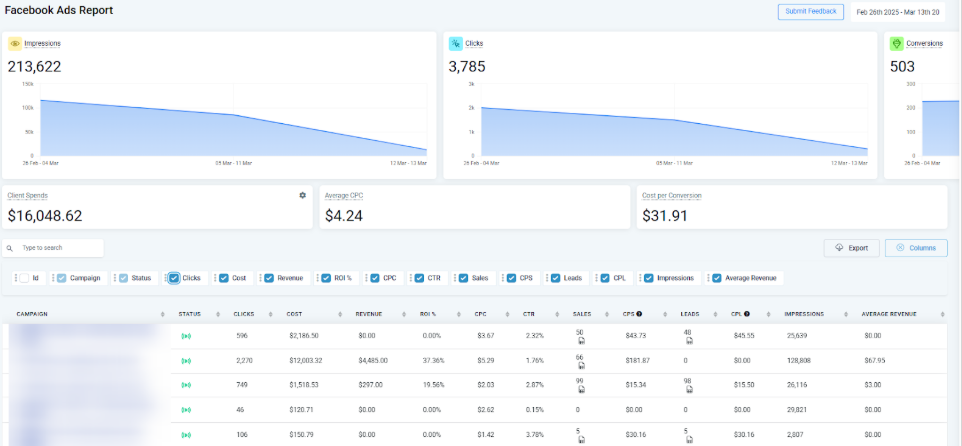 Section titled “Pro Tips”- Verify Facebook Ad Account Integration: Ensure your Facebook Ad Account is correctly integrated with and that you have admin permissions. This is crucial for accurate data collection and reporting.