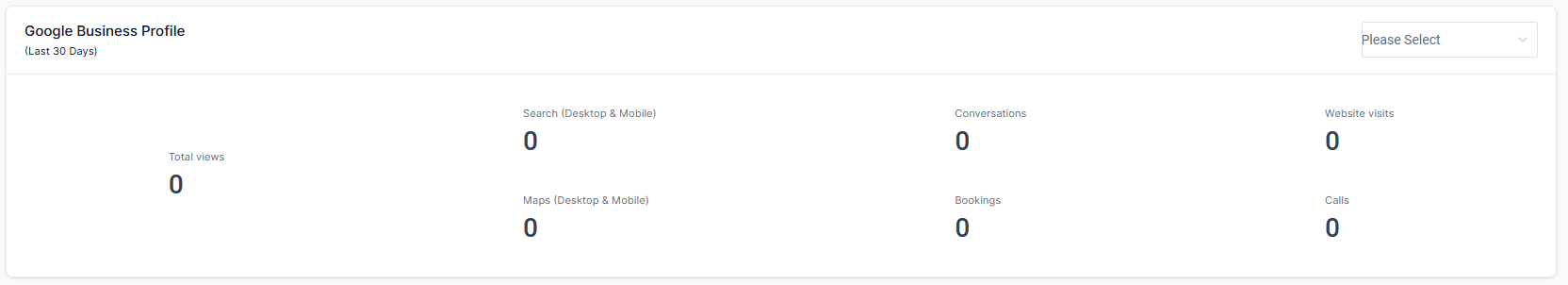 Section titled “ Row 6:”- Google Business Profile (Last 30 Days): This report explains the performance of your business profile on Google over the last 30 days. It includes metrics on how often your profile was viewed, how users found you (via search or maps), the level of engagement (conversations and bookings), and the number of calls or website visits generated from the profile. These insights help track the visibility and impact of your business in local searches.