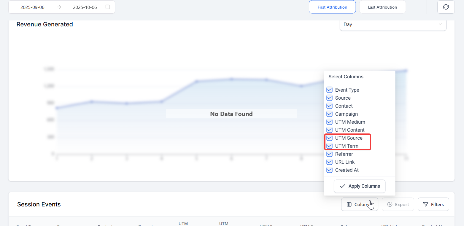 NOTE: The Attribution Report table has been updated to include “utm_source” and “utm_term” columns, providing enhanced tracking and analysis capabilities.