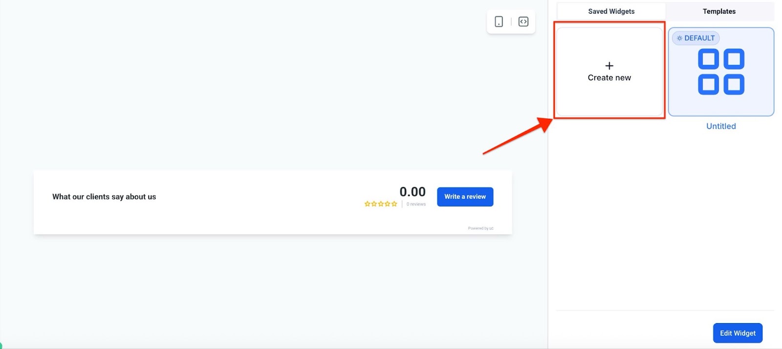 - Click on the “Create New Widget” button, or you can choose from an existing template in the templates tab to get started.