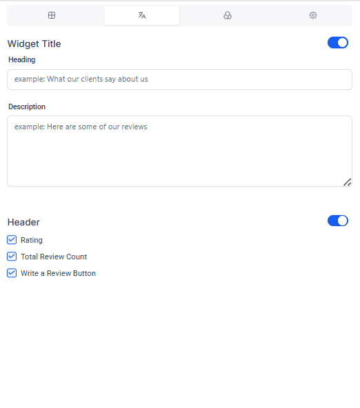 Header Section: Choose to display elements like overall rating, review count, and the “Write a Review” button.