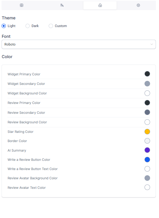 Component Colors: Fine-tune individual elements like headings, star ratings, and borders to align with your brand colors.