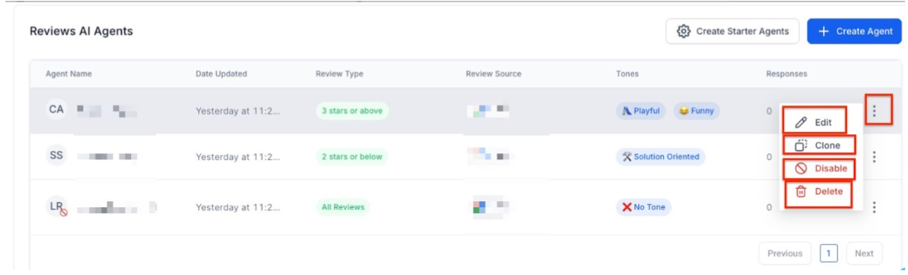 You can edit, clone, or delete AI agents at any time. It’s also important to preview the AI-generated responses before they go live. Within the Reputation Management view, you’ll be able to easily see which agent crafted each review reply, making it easy to track and manage responses.