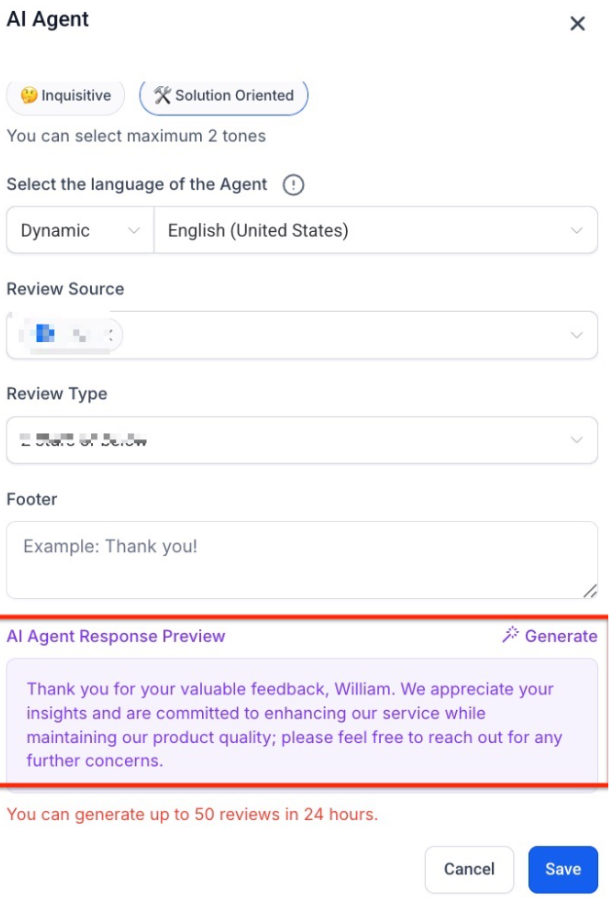 Answer: Yes. The AI is designed to use available metadata. If the reviewer’s name is public on Google or Facebook, the AI will often start the response with “Hi [Name],” which significantly increases the “human” feel of the automation.