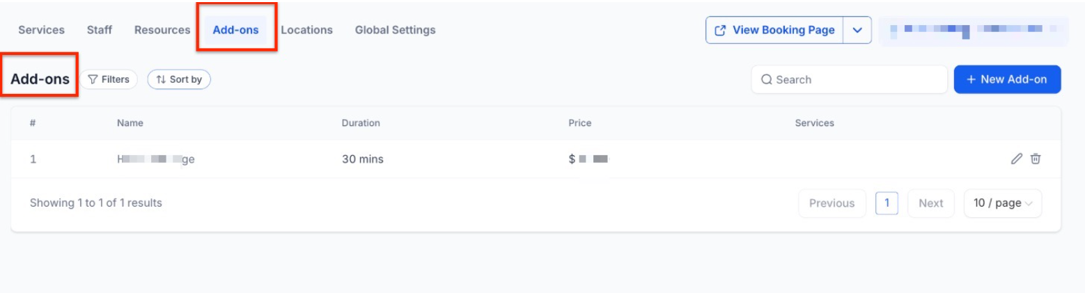 Question: What happens if I delete an add-on? Answer: Deleting an add-on removes it from all assigned services and the booking page. It will no longer be available for future bookings.