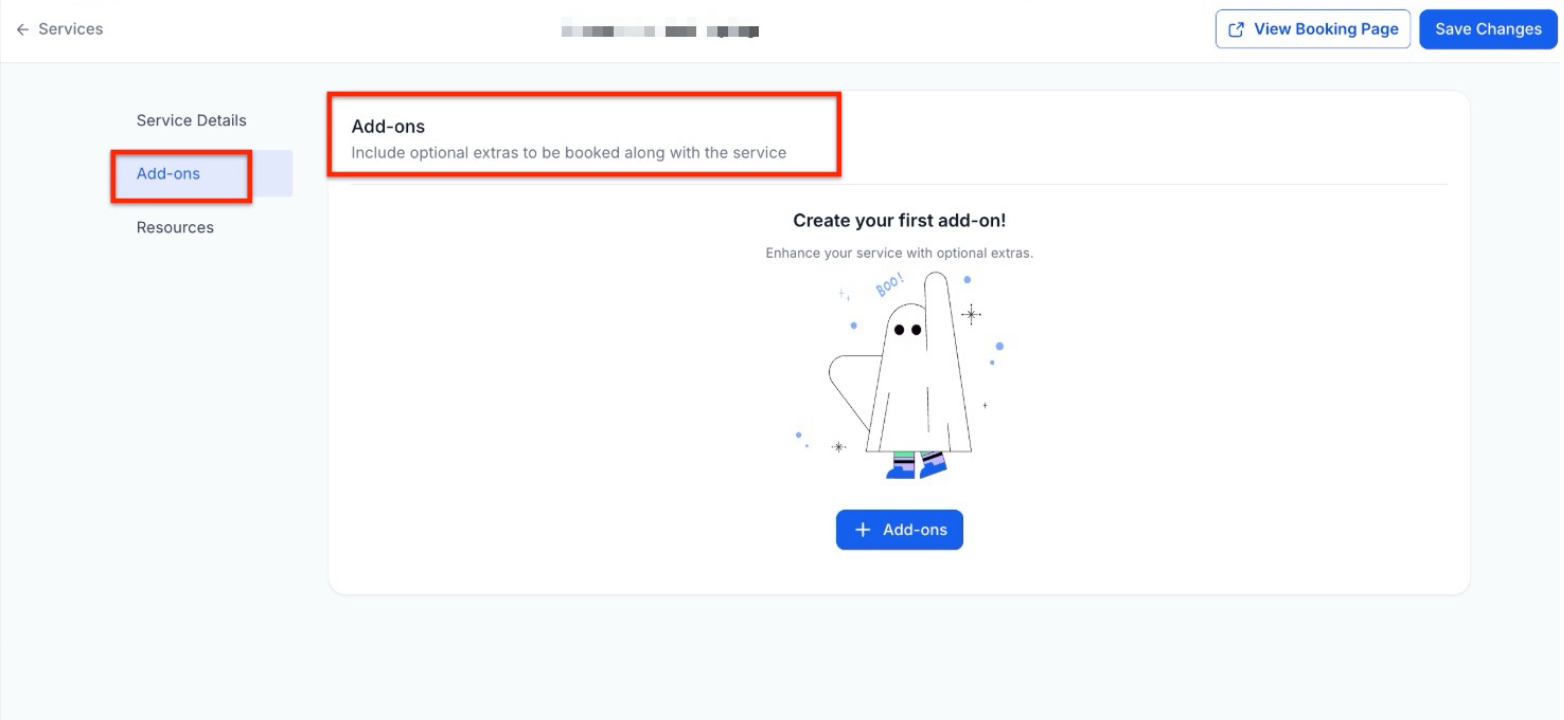 - Navigate to New Add-on: Go to the Services Panel (Calendar > Calendar Settings > Services). Open the Add-ons tab from the secondary navigation ribbon and click the + New Add-on button.