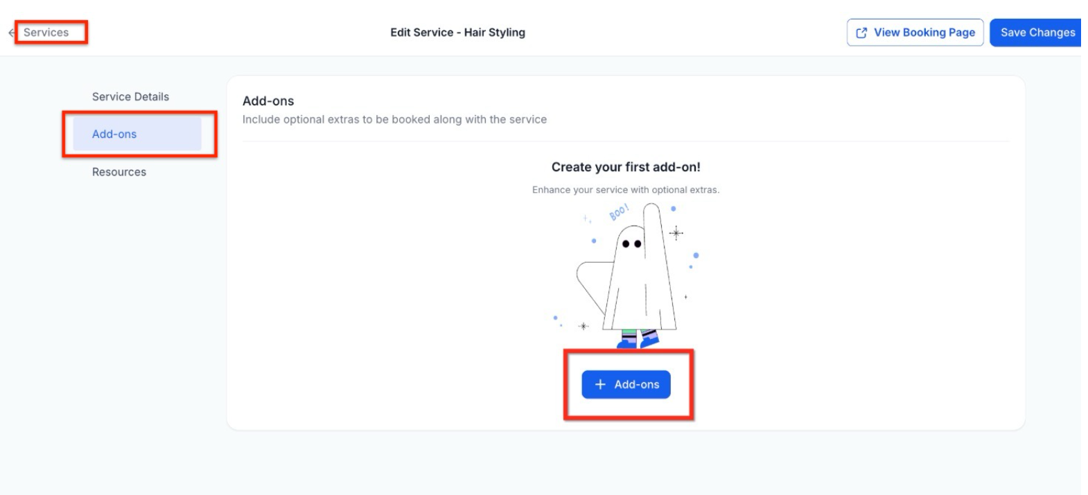 Section titled “How to Create Add-ons”Proper setup ensures add-ons display with the correct time, price, and visibility.