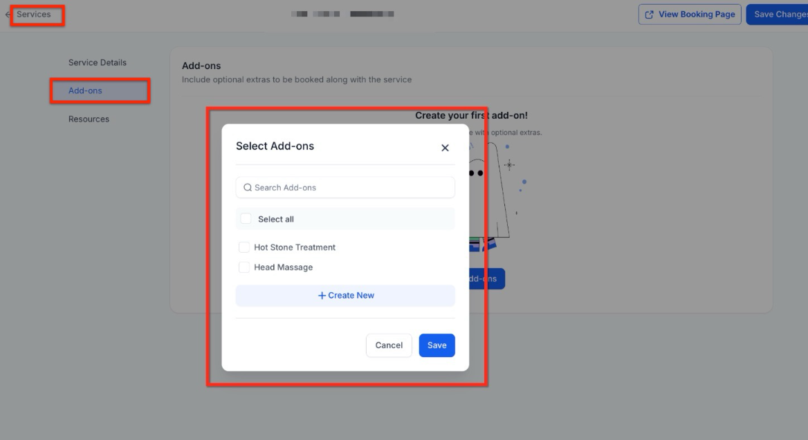 Section titled “Linking Add-ons to Your Services”Just because you’ve created an add-on doesn’t mean it will automatically show up for every appointment. To make sure your customers see the right options when they book, you need to manually connect each add-on to the specific services where they belong.