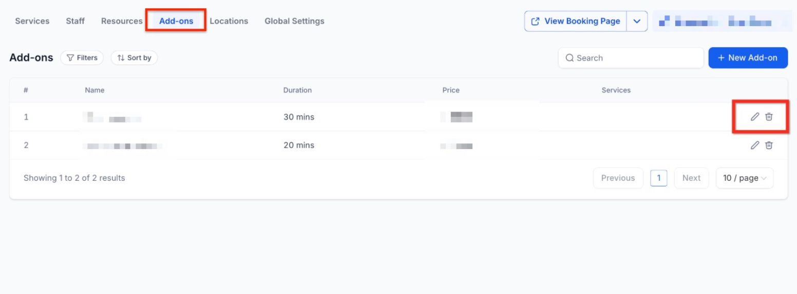 Section titled “Managing Your Add-ons”Keeping your service list up to date ensures your customers always see the right prices and options. If you need to change a name, adjust a cost, or remove an item you’ve stopped offering, follow these steps: