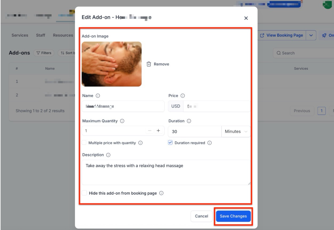 - Hide from Booking Page: Use this if you want the add-on to stay private for staff use only.