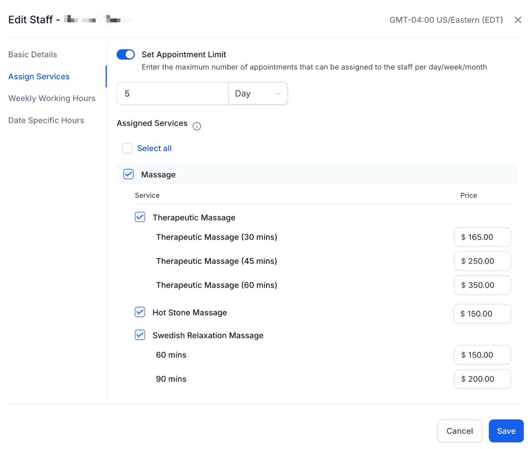 - Service Specific Pricing: Define unique pricing at the staff level, allowing for variations based on experience or seniority.