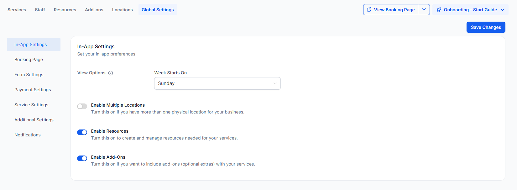 Answer: Global Settings allow you to apply defaults across all services, making it easier to manage booking, payment, and scheduling behavior from one place.