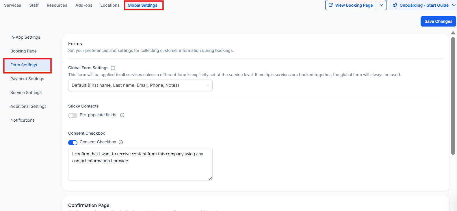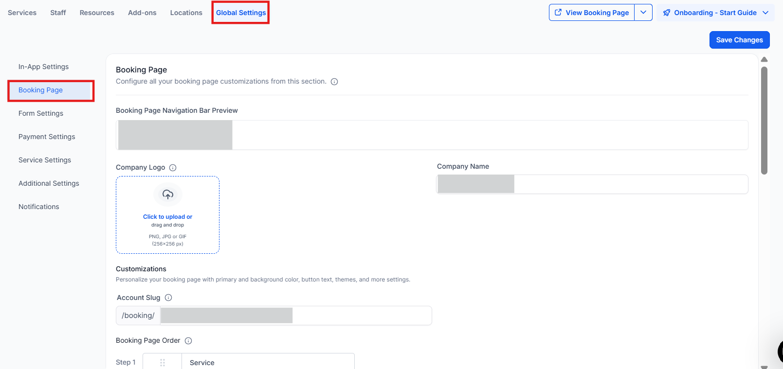 Answer: You can use the booking page preview to check the changes before sharing the link with customers. This ensures that updates in Global Settings are displayed correctly on the booking page.